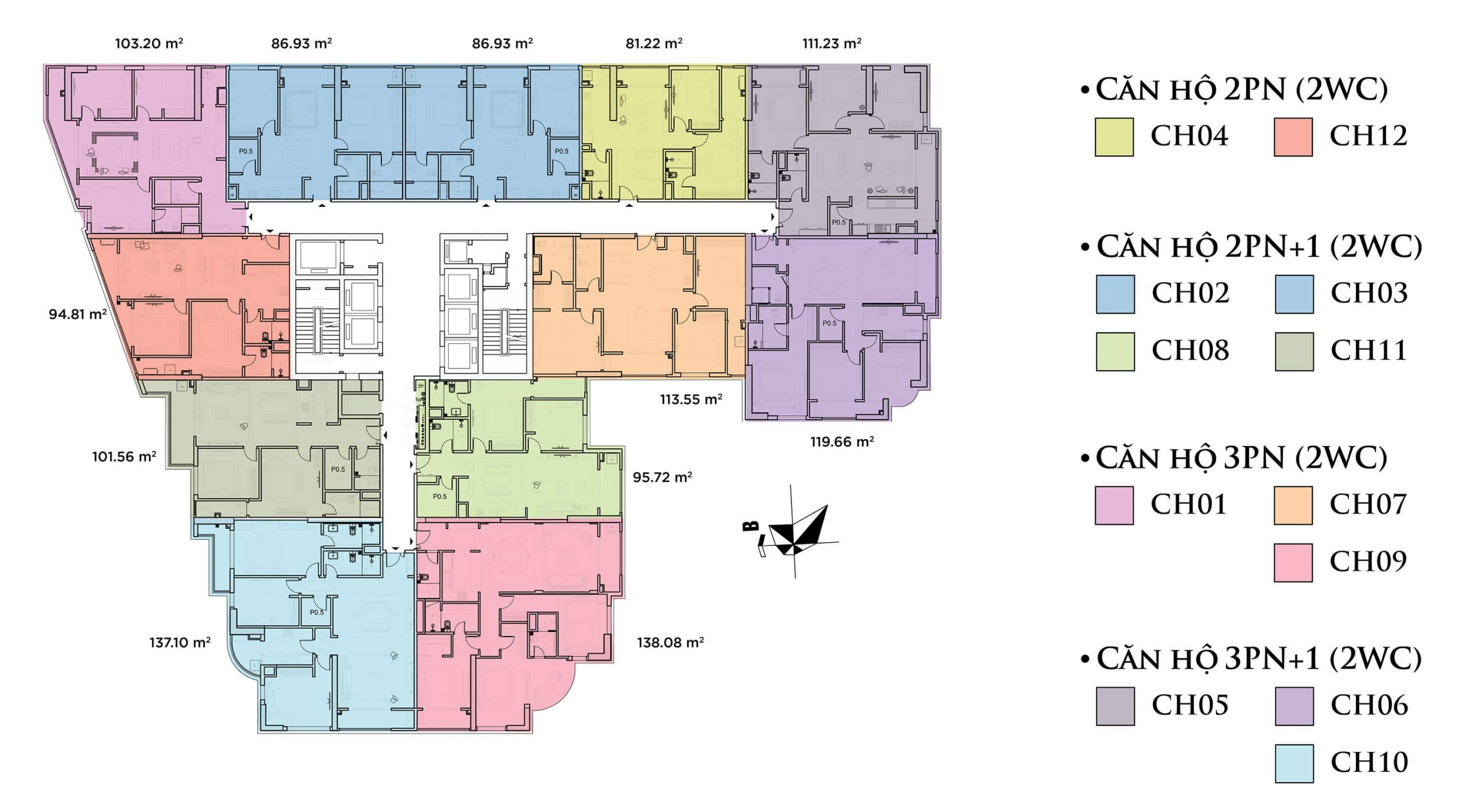 Số căn hộ: 281 căn trong đó 5 căn Penthouse, 12 căn Duplex và 264 căn hộ cao cấp
